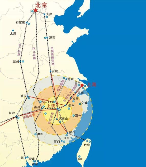 上饒是全國(guó)地級(jí)市中唯一的高鐵“十字”交匯的城市,乘高鐵坐高鐵直達(dá),北京僅需6小時(shí),廣州、貴陽(yáng)、柳州僅需5小時(shí),上海、廈門(mén)、南京僅需2小時(shí),杭州福州、合肥、南昌均為1小時(shí)左右,快速通達(dá)全國(guó)。